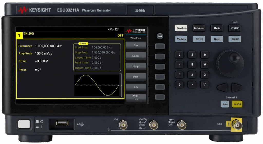 Ein Funktionsgenerator ist ein Mess- und Prüfgerät, das elektrische Signale in unterschiedlichen Kurvenformen erzeugt, etwa als Sinus-, Rechteck- oder Dreieckssignal. Damit lassen sich Schaltungen, Bauteile oder ganze Systeme unter definierten Bedingungen testen und ihr Verhalten analysieren. Eingesetzt wird er in Entwicklung, Service, Ausbildung und Forschung – überall dort, wo reproduzierbare Signale für Prüf- und Messaufgaben benötigt werden.